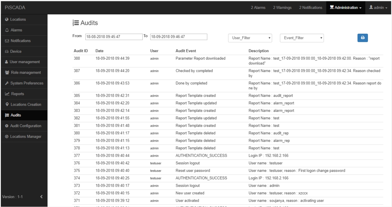 PiSCADA application is full-fledged with all 21 CFR Part 11 requirements and incorporates the latest Computer System Validation Requirements outlined on GAMP5. a) Audit trail review b) Backups and restore c) User account deactivate d) Access control/User management